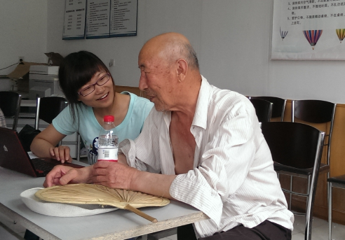 一位认真的爷爷,他仔细回忆访员同学的问题