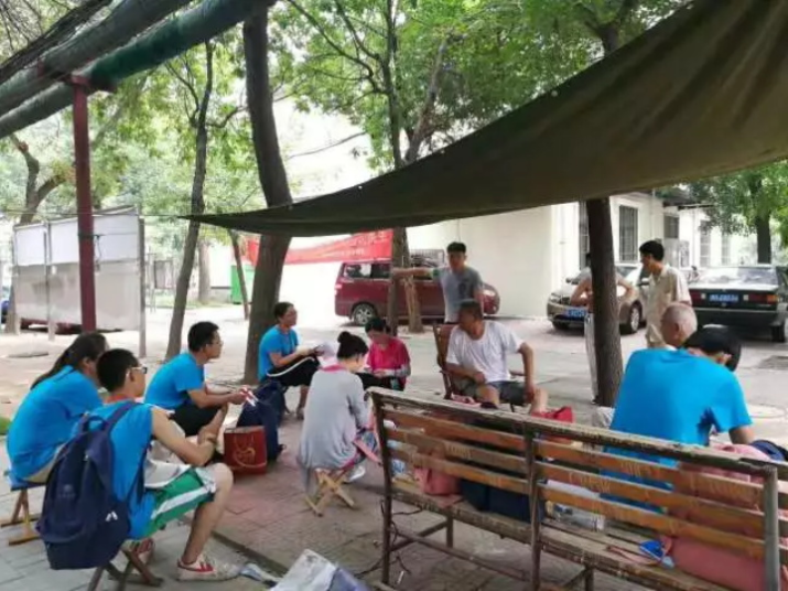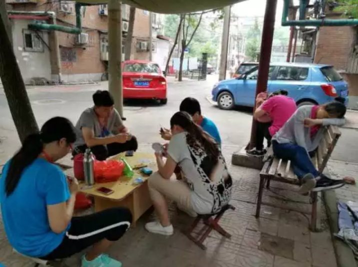 居委会旁,一个伯伯用几根电线,一张户外布搭起简易的小棚子,放上一张小桌,几个马扎,平日和街坊邻居聊天消遣时光。我们在社区的几天,就是这个小凉棚,成了我们的临时"根据地"。