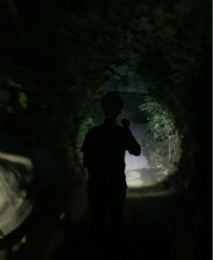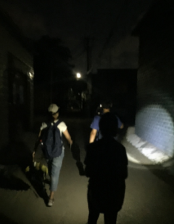 伴随着狗叫的夜晚则更恐怖一些,村里路灯不多,黑黢黢的,路过一片玉米地时,更是觉得头皮发麻。好在队里的男生总是以一种看似非常专业的姿态举着一个看似专业的手电走第一个开路,看着他一米八的背影,倍有安全感。遂拍照发朋友圈,直到有人回复,“看起来好像盗墓笔记哦”,再想想我们学考古的队长,顿觉背脊发凉。