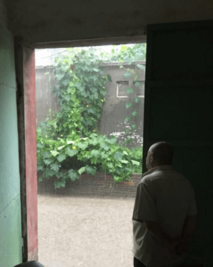 迎接我们到来的,是一场猝不及防的大雨。村里的排水系统不大好,不一会儿,村里的主干道就成了一条小小的河流。我们的协调人从墙角捡来几块砖头垫在路中间,我们才得以穿行。协调人是个六十岁左右的大叔,耷拉着眼角,挺着啤酒肚完成这一系列动作的时候,我们很受感动。