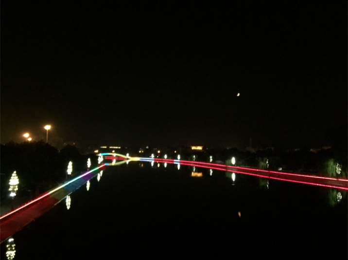 我们的活动范围主要在县中心,这里没那么繁华,基础设施却也一应俱全——县政府、商场、公园、广场。这里人不多,白天的马路上人和车都很少;到了晚上,河道亮起霓虹灯,公园里出现跳广场舞的大妈,凤凰传奇的音乐震天响。