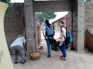 正直农忙时节,老人们坐在门口,手里握着拐杖处理杏子,我们上前去和老人搭话,老人的眼神从茫然转为欣然,一边做口述史,一边请我们吃杏子。入户访问,我们的嘴也没有闲着,新鲜的桃子西瓜更是增进了我们和老人的感情。
