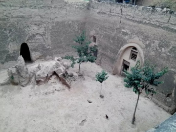 穿过马路,来到西瓜地里找到一位爷爷访谈。爷爷非常开心,一边看着西瓜一边和我们讲话,又过了一次嘴瘾。回去的路上,还参观了爷爷家的地下窑洞,是不是很有历史的味道。