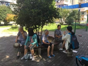 幸运的是,我们遇到了乘凉的老人,这些老人为我们提供了一些关键信息。我们深深体会到就算居委会配合,但是时间不对,老人不符合,符合的老人不配合,做口述史还是相当的困难,尤其在这么热的天气下,真的是难上加难啊!