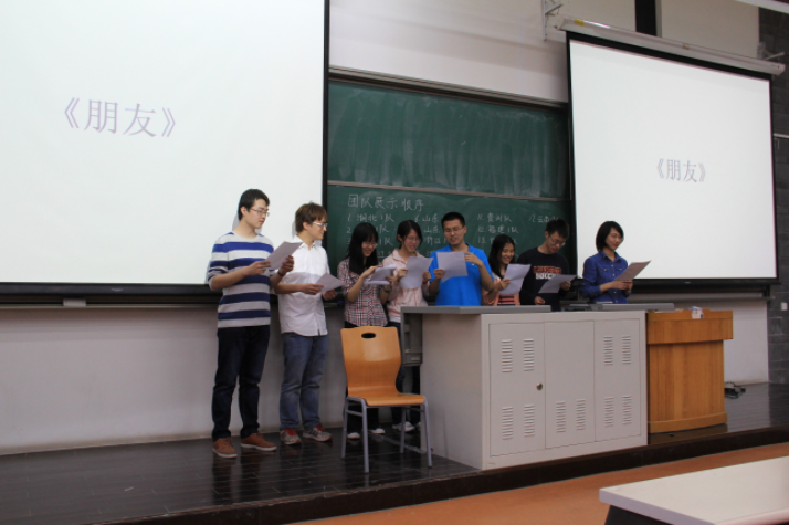 此次团队展示包含了团队成员介绍,团队LOGO展示,以及才艺展示等内容。同学们精心排练了歌曲、小品、朗诵及视频。形式多样,课堂上不时传来阵阵掌声和笑声。虽然在结束了当天的实地模拟访问很辛苦,但是同学们依然以饱满的热情展示着自己的团队。