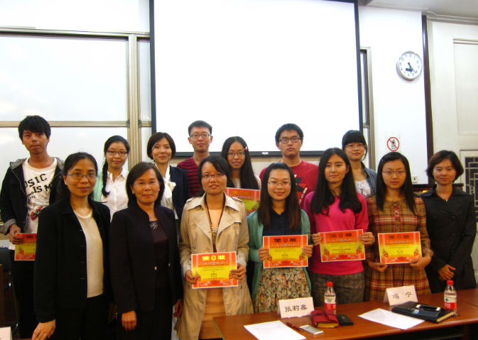 与会领导为获得优秀的同学颁奖并合影