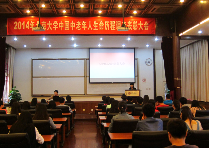 中国健康与养老追踪调查(CHARLS)2014年中国中老年人生命历程调查总结表彰大会在陈欣欣老师的致谢和背景歌曲《相亲相爱》的旋律中圆满结束。