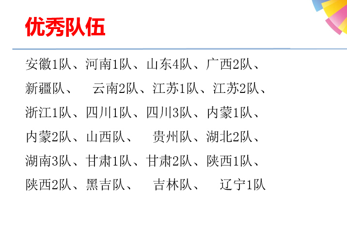 浙江一队:李一,广西一队:李莉萍,河南一队:张鹤,云南三队:颜志颖