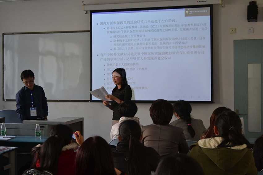 第十三届中国经济学年会的CHARLS专场讨论(分会场一专题二十九)于2013年11月16日13:30至15:00在西南财经大学柳林校区通博楼教学区举行,相关领域的4篇文章的作者就养老保险、子女与老人的关系、关注失能老人等相关领域进行了精彩的报告,会场讨论激烈,座无虚席。本次讨论的主持人是北京大学国家发展研究院的孔涛老师,评论人是孔涛老师、西南财经大学经济与管理研究院的许冰老师、厦门大学的沈凯铃老师以及浙江工商大学的陈欣欣老师。