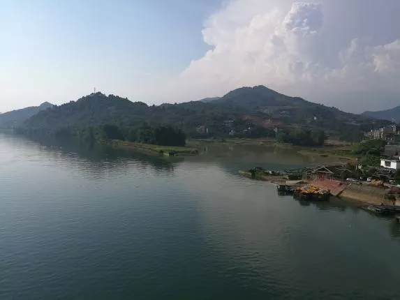 经历了六个多小时大巴车程,到镇上已是下午五点多了。阳光毫不吝啬地洒在远山和河流之上,远处群山层层叠叠,形成虚影。河边、山上处处是错落有致的居民楼,天上的云正是俏皮又可爱的模样。不知怎的,就想起了王维的一句诗“江流天地外,山色有无中”。