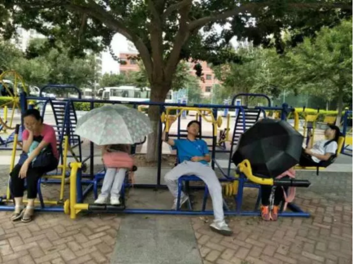 其实在餐馆睡还算不错的,至少有桌子可以趴着,还有空调可以吹着。在朝阳某小区时,我们还在这些铁物件上睡过,上有烈日暴晒,下有铁疙瘩咯得你浑身不舒服。