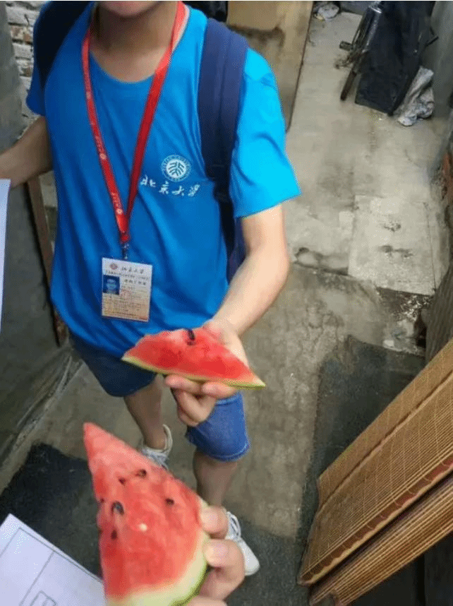 看着顶着烈日不停歇地识图的我们,美丽可爱又善良的小姐姐甚是心疼,招呼我们进她家休息一下,吃两块西瓜。吃着冰镇西瓜的我们感动到眼泪掉下来。