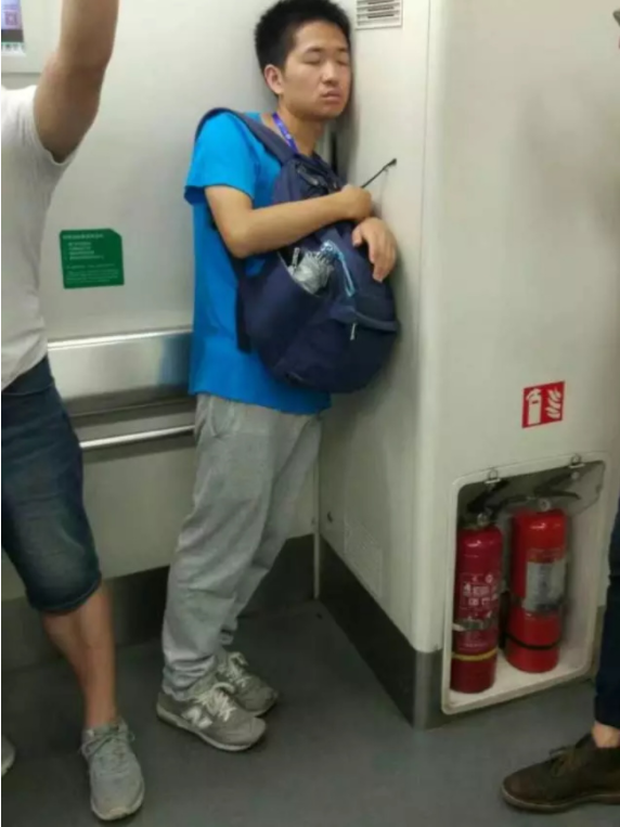有时一天之内需要来回穿梭于几个村居之间,便不得不牺牲中午那宝贵的一点点休息时间去坐地铁。太累了,便只能站靠着咪一会。