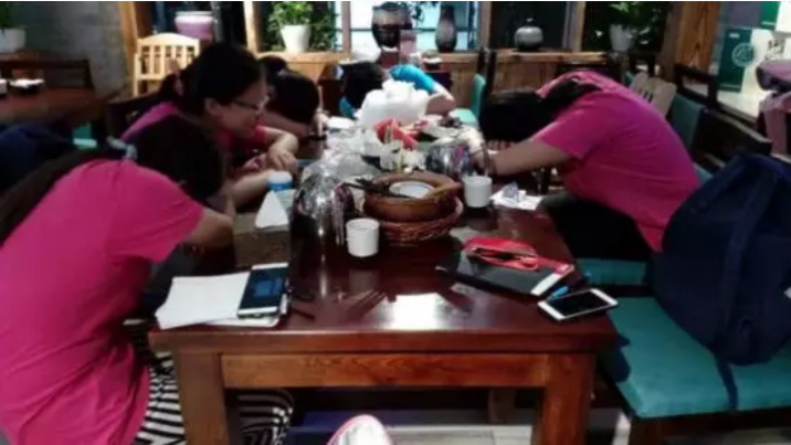 刚开始,大家还“要脸”,不太好意思在餐馆里睡觉,但最终敌不过浑身的疲累和睡意的侵袭,纷纷倒下了。
