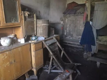 给老人倒水才发现家里真的是家徒四壁:一个旧电扇,一台不能看的电视,剩下的是些旧家具,锅里是早上的剩饭,堆在屋里的只有自己种的南瓜。