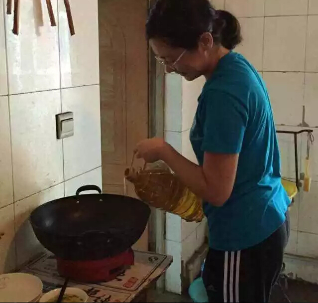 村委会的伙食房,进门便见灶台,灶台的地上堆着灶灰和用来燃烧的松果;靠墙一排橱柜,散乱放着锅碗瓢盆,报纸盖着积满油污的菜案菜刀;水泥地板中央一个下水口,做饭的阿姨告诉我,没有太多食物残渣的泔水可倒于此。到处苍蝇成群,来自城市的我们觉得饮食卫生状况堪忧。