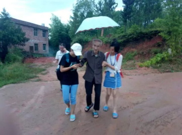 坐着摩托车爬了不少山路的我,刚下车就总觉得很奇怪,我走到他身边,嘴里念叨欢迎的他眼神也一直锁定在前方。后来才知道爷爷有视力障碍。