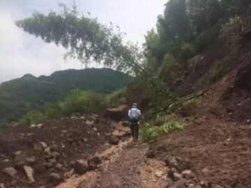 等到云雾散开了一些,我们立马出发去接老人,由于大雨冲走了不少泥土,道路上坑坑洼洼十分难走,不少地方都有很深的积水,甚至出现了“小河”。