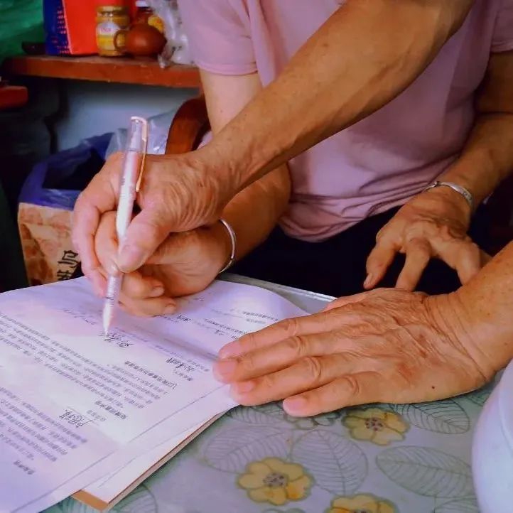 她只有60岁,但皱纹很深了,称呼一句奶奶似乎也合适。看到我们来,奶奶还向爷爷要了一块海绵,细细地搓洗茶杯,直到茶杯看起来还算白净,然后换了一包茶叶,访问过程中一直在为我们添茶。在访问过程中我们了解到,爷爷奶奶长期只有两人一起住,可能也很久没有人来和他们聊聊天拉拉家常了。奶奶偶尔有不会回答的题大声地问爷爷,爷爷也会笑得很开心地回答。在签署知情同意书时,由于奶奶不会写字,爷爷便握着奶奶的手写下了奶奶的名字。眼里有爱,眼里有星光,守着一幢三层小楼和一间杂货铺,细水长流。祝愿爷爷奶奶,一直幸福长寿,白头偕老。